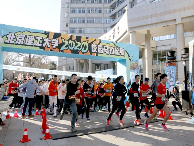 學(xué)校第二屆校園團(tuán)跑?馬拉松賽于12月5日在中關(guān)村校區(qū)鳴槍開賽。比賽由體育運(yùn)動(dòng)委員會(huì)主辦,體育部、校工會(huì)、校團(tuán)委、研究生院、研究生會(huì)、保衛(wèi)處共同承辦,設(shè)團(tuán)隊(duì)賽、個(gè)人馬拉松賽兩個(gè)單元。 團(tuán)隊(duì)賽共計(jì) 30個(gè)隊(duì)伍近700余名教職工和研究生參賽,以中心教學(xué)樓為起點(diǎn),經(jīng)教學(xué)南路、主樓、教學(xué)北路,循環(huán)4圈,以最后一名到達(dá)的時(shí)間為該隊(duì)的最后成績(jī),賽程約4.7公里。凜冽的寒風(fēng)擋不住師生們熱情的腳步,隊(duì)員們相互鼓勵(lì)、努力拼搏,朝著共同的榮譽(yù)與目標(biāo)奮進(jìn),在一片歡呼與熱鬧聲中,教工組機(jī)關(guān)、信息與電子學(xué)院、資產(chǎn)公司率先沖破終點(diǎn),研究生組機(jī)電學(xué)院、機(jī)械與車輛學(xué)院、管理與經(jīng)濟(jì)學(xué)院隊(duì)伍率先抵達(dá)終點(diǎn),分別摘得教工組和研究生組一等獎(jiǎng)。個(gè)人馬拉松賽程分為10公里(男、女)和5公里(男、女),參賽師生和校友人數(shù)達(dá)500余名。師生們共同競(jìng)技, 挑戰(zhàn)自我、超越極限,展現(xiàn)出了北理工師生勇于拼搏、奮勇向前的精神風(fēng)貌。