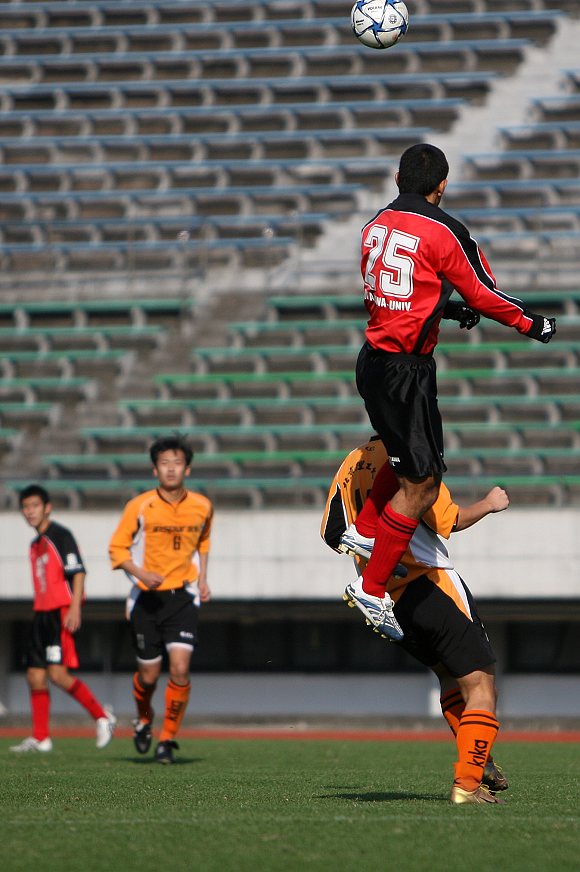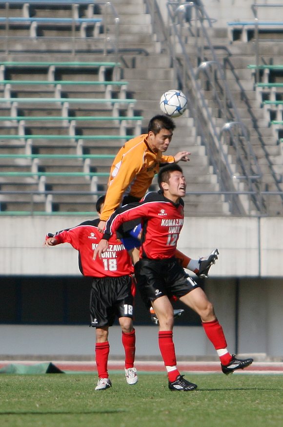 正是這點的不同,導致駒澤大學隊在上半場第35分鐘和第40分鐘,連續兩次利用罰角球的機會頭球破門得分,使得比分變為了3:1。中場休息時,金志揚總教練告誡隊員:由于大部分隊員習慣了國內比賽的較慢節奏,面對這種異常的快節奏和頭球助跑搶點的打法可能心理上準備不足,所以感到極不適應,下半場的比賽一要心理上穩住陣腳,二要進攻中積極拼搶,三要防守時注意站位,總之,我們是報著學習的態度而來,勝敗乃兵家常事,但即使輸球也不能輸人,大家要盡自己最大的努力和絕不服輸的精神繼續與對方戰斗。