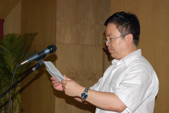 足球隊總教練金志揚教授發表感言,對學校領導重視表示感謝,對中國足協、北京市教委的大力支持表示感謝。
