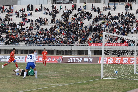 第73分鐘,呼和浩特隊在禁區前再次得到任意球機會,在兩名隊友的跑動掩護下,29號巴西外援威廉大力施射,球帖著草皮直奔網窩,3-0!