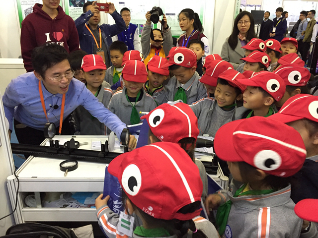 蘇鐵健老師在全國“挑戰(zhàn)杯”現(xiàn)場給參觀的小學生講解TEMS