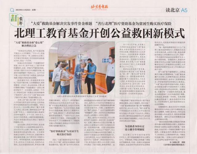 《北京青年報》報道我校公益救困新模式