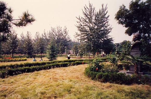 我校中關村校區的中心花園自上世紀五十年代建校初期直至八十年代初,一直由比較零亂的臨時建筑和花房用地組成,直到八十年代中期,為迎接校慶45周年,學校對中心花園進行了較大規模的重新規劃和改造,使其成為了師生員工的一方樂土。