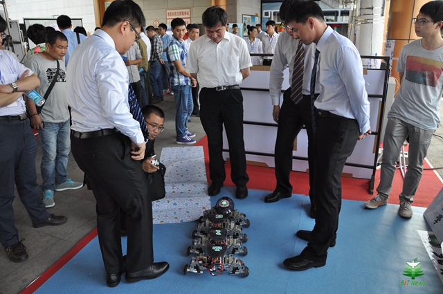 2011年,羅慶生在電視上看到一臺日本研制的八腿多關節機器人,自重16kg,有20種步態,甚至能走“詭秘的太空步”,很受震撼,當即給學生提出研制“屬于中國的,自重8kg,40多種步態的機器人”,面對并無信心的學生,羅慶生說“不慌否定,不慌拒絕,我給你們一個星期時間進行思考,謀定而后動。”一周后,經過仔細思索和反復鉆研的學生們果然不再以為高不可攀,而愿意嘗試,團隊形成了共識,積極主動地投入到緊張、艱苦、甚至枯燥的研制之中。為了避免“先天不足”,僅關于結構方案細節的討論就達5次之多。“我們先找出盡可能優化的方案,再去探討工程圖紙的繪制,嚴格細致的規定每一個細節。”歷經十個月的“錘煉”,一臺自重8kg,能走48種步態的機器人終于誕生了,這項“MADE IN BIT”的作品不僅在中俄工科大學聯盟首屆機器人比賽中一舉包攬了最佳創意獎和最佳表現獎,還在第四屆全國大學生創新創業年會上驚艷亮相,以高票數當選“我最喜愛的十佳項目”,并名列第一,得到各界高度評價。