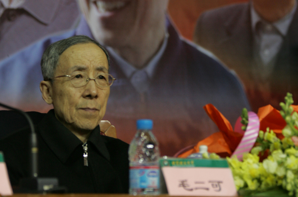 新生簇擁在毛二可院士身邊。