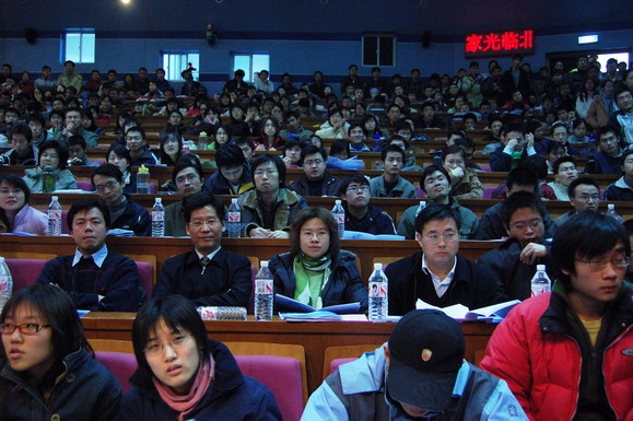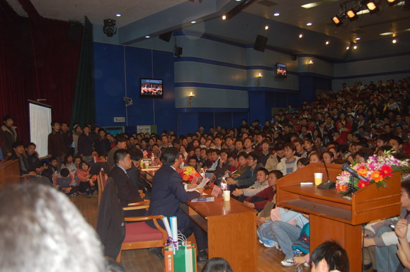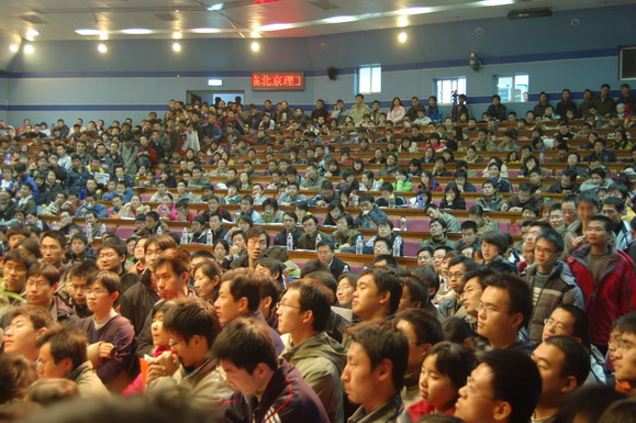 學生工作部早在報告會開始一周前就通過網站、論壇、海報、噴繪等多種形式對本次報告會展開了大規模宣傳,使這場報告會受到了同學們的廣泛關注。在報告會開始前6個小時就有同學來到會場等候,報告會開始前一個小時所有座位都坐滿了觀眾,過道和講臺上都擠滿了熱情的聽眾。