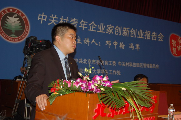 “中關村青年企業家創新創業報告團”團長、中關村科技園區管理委員會主任戴衛首先發表講話。他向同學們介紹了報告團成員的簡要事跡和中關村科技園區的基本情況。他說:“中關村是中國高新技術產業自主創業的發源地;是中國高新技術創新投資的熱谷;是經濟、教育、科技體制改革的先行試驗地;是培養高素質人才的基地。在中關村實現了中國制造向中國創造的轉變,演繹著技術、創新、財富的奇跡。”他勉勵同學們在大學期間要敢于自主創新、要培養刻苦學習、鉆研的精神和強烈的市場競爭意識。
