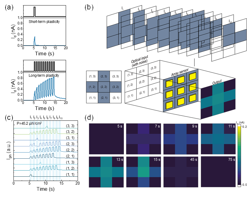 圖1. 仿生光學(xué)突觸器件示意圖及加密防偽應(yīng)用