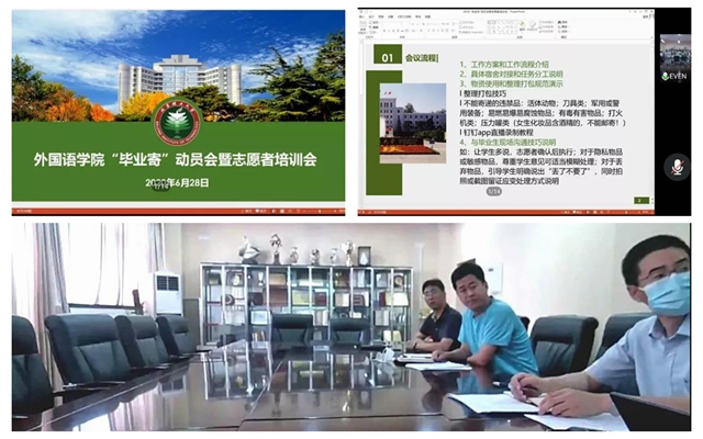 6月28日上午,學(xué)院召開(kāi)“畢業(yè)寄”動(dòng)員會(huì)暨志愿者線上培訓(xùn)會(huì),成立畢業(yè)生行李寄送專(zhuān)項(xiàng)工作組。工作組組長(zhǎng)楊暉和李京廉向志愿者師生表達(dá)了衷心感謝,并鼓勵(lì)大家按照學(xué)校工作要求,把畢業(yè)生行李整理寄送工作做好。根據(jù)前期學(xué)生需求調(diào)研結(jié)果,學(xué)院對(duì)志愿者進(jìn)行了合理分配,并對(duì)工作流程、物資使用、整理打包規(guī)范等進(jìn)行了詳細(xì)的培訓(xùn)。
