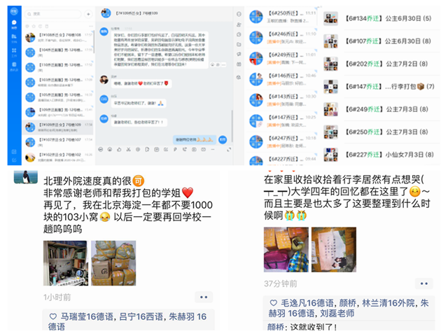 自6月11日北京新發(fā)地疫情發(fā)生以來(lái),外國(guó)語(yǔ)學(xué)院高度重視,迅速反應(yīng),按照北京市疫情防控相關(guān)要求,結(jié)合學(xué)校《疫情防控工作指南》《畢業(yè)生離校工作方案》,學(xué)院以“圍繞學(xué)生、關(guān)照學(xué)生、服務(wù)學(xué)生”為中心,成立畢業(yè)生離校工作領(lǐng)導(dǎo)小組,確保2020屆畢業(yè)生離校工作的順利進(jìn)行。學(xué)院領(lǐng)導(dǎo)班子帶頭,師生黨員充分發(fā)揮先鋒模范作用,60多名教師和在校生積極擔(dān)任志愿者,集中完成畢業(yè)生行李寄送工作。身在各地的畢業(yè)生也積極響應(yīng)、高度配合,大幅提升了工作效率。
